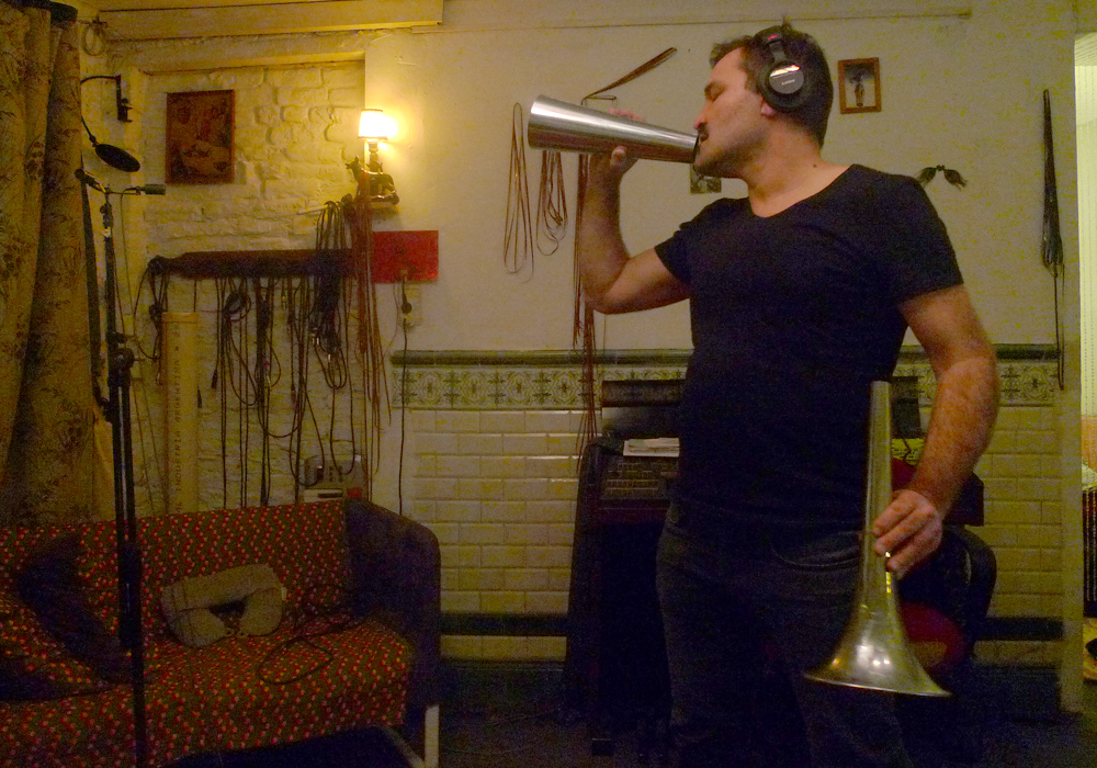 Antoine Läng’s (vocals+electronics) taste for hybridization and experimentation leads him to use electronic devices as a means of voice processing to extend its range. Initiated in rock, metal or jazz bands, this process is ongoing and increasingly directed toward experimental and improvised music, in regular projects (dQtç, Léon trio, Atomic Paracelze, InsubMetaOrchestra) or solo. Fascinated by the plasticity of the human voice and the multiple roles it can play in electroacoustic and experimental music, his approach to the instrument extends to several registers – spoken, sung, noise, abstract sound textures. His improvisational work revolves mainly around the peripheral sounds and noise, leading to the production of organic and abstract textures or turning into singing, and includes some unique vocal techniques combining lyrical sophistication and brute animality.